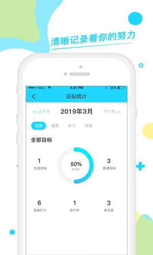 1.个性化目标设定:灵活的目标设定功能,不论是量化的数字目标还是质性的进步描述,目标打卡都能完美适配。